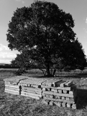 A lényeg, a faanyag nagy része leszállítva, 160 db talp felpakolva, lepakolva – ami azt illeti látványra nem tűnik soknak ez a 160 talpbeton, de 5 forduló + garantált izomláz. (az autóra egyszerre csak 30-at lehet feltenni, nem bír el többet).