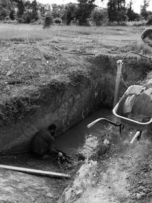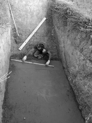 Aztán elkezdtük (Jion-Béci, Gergő, Viktor) a kútakna alapozását is.