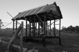 A nagy tett az andráskeresztek beszabása (történeti kitekintés: Szent András X alakú keresztre feszítették fel), hogy statikailag szilárd legyen az épület. Ha valaki arra adná a fejét, hogy hobbiból andráskereszteket szögelne – esetleg megfeszítés céljából, – mondanám neki, hogy asztalos irányú ismereteket igényel. Menő keresztünk lett az biztos, milliméterre! beszabva. Ezt a tárolót már nem dönti össze a magyar szél sem. Komolyan mondom, egyre inkább lennék ásó, hogy itt lakhassak. A panoráma is jó, meg a levegő is.